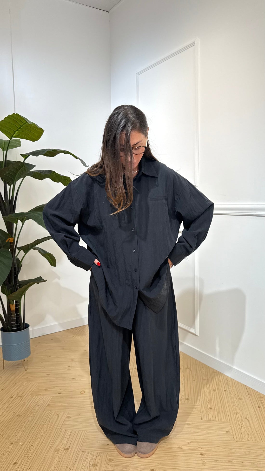 Coordinato Office Beige Coordinato composto da camicia a maniche lunghe e pantalone a righe verticali...