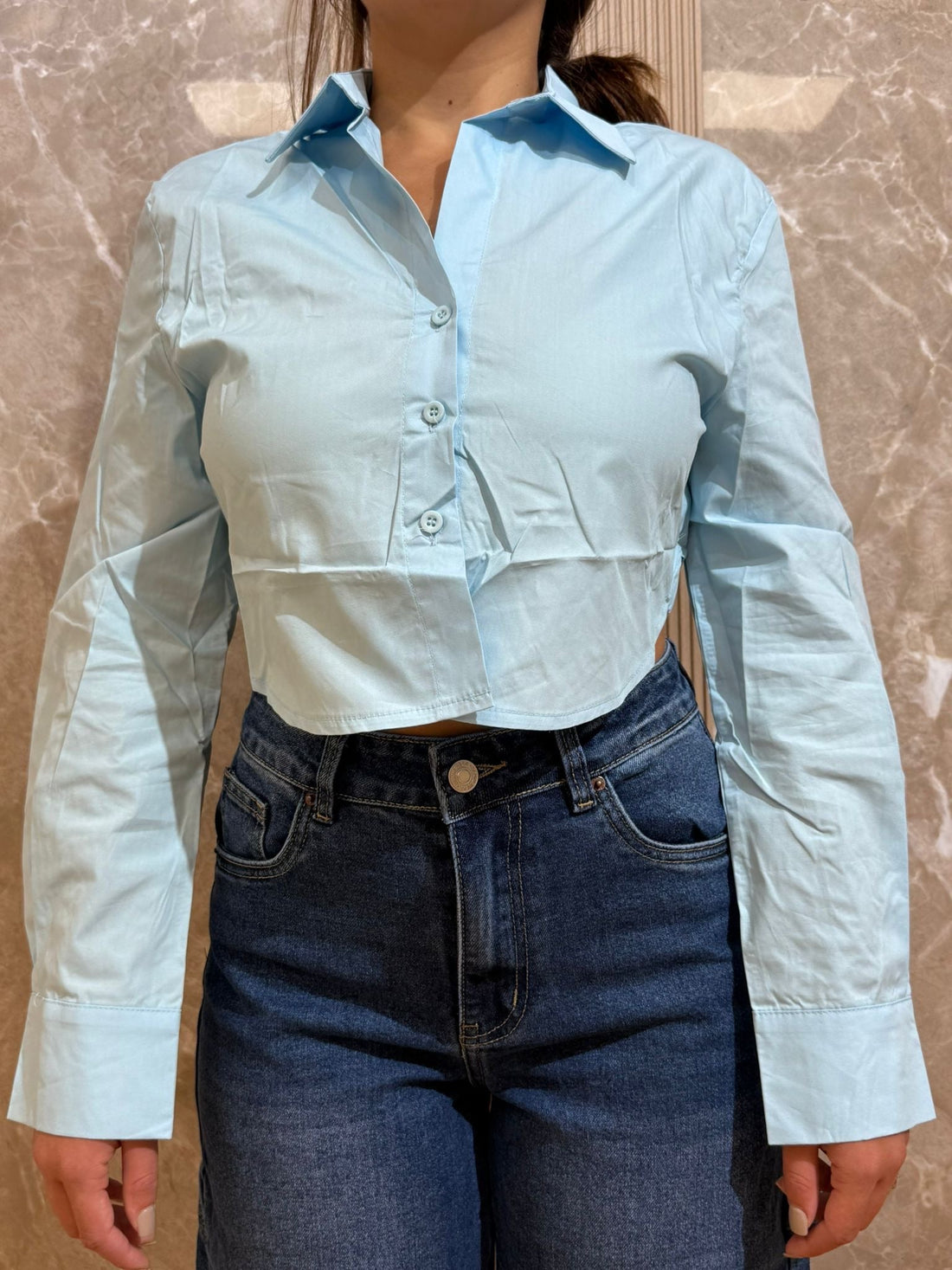 Camicia crop celeste