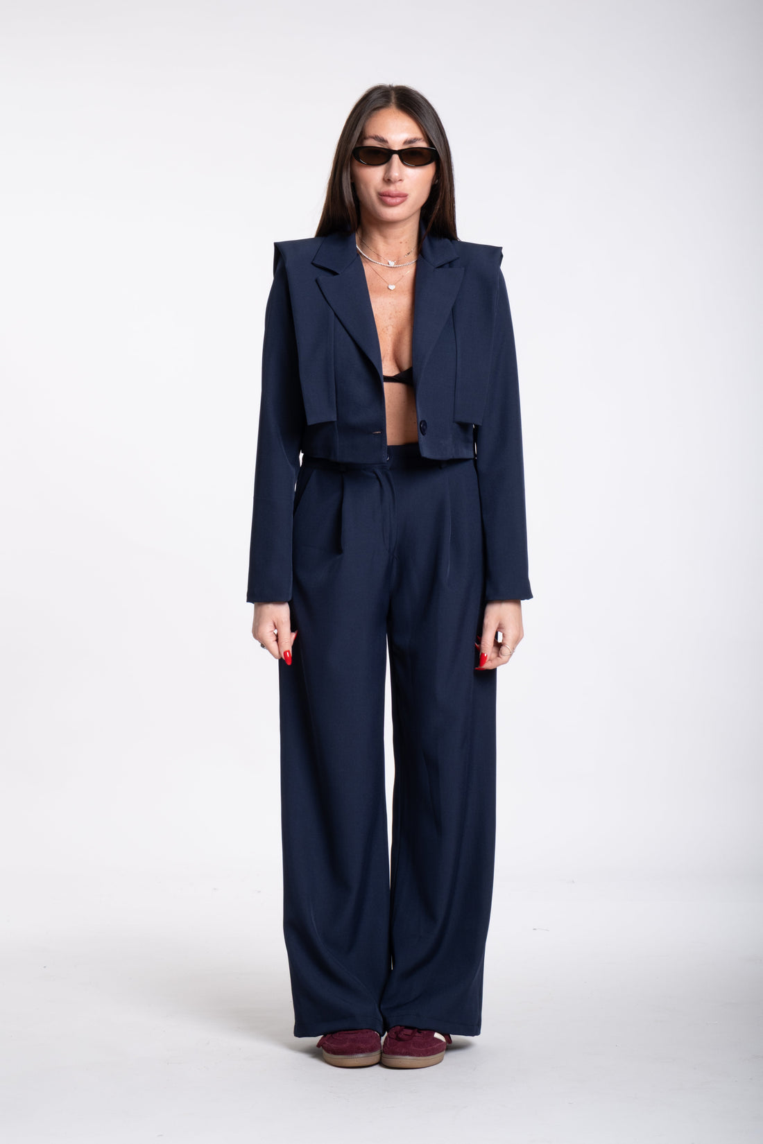 Tailleur crop spallina blu